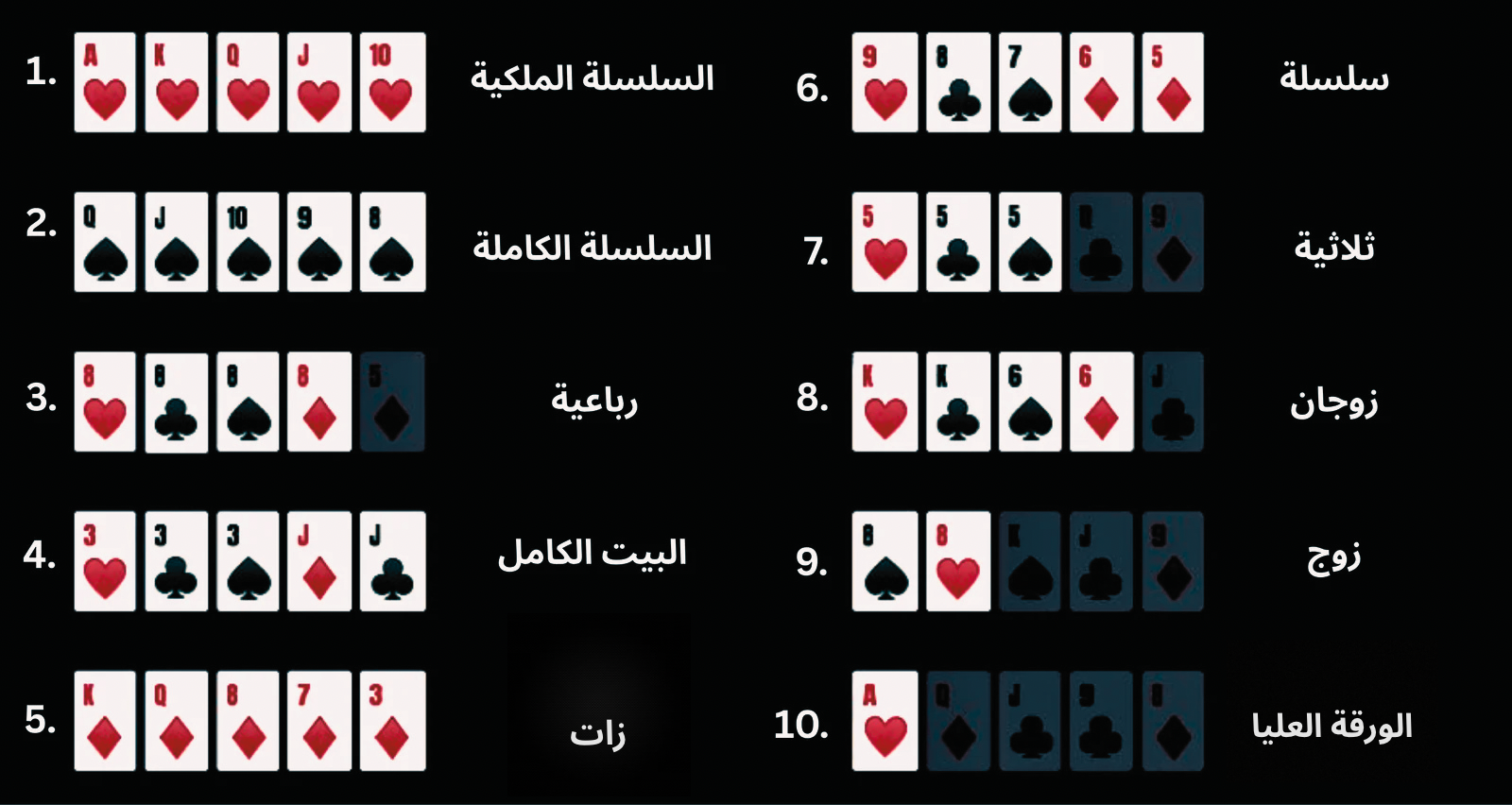 تصنيفات الأيدي (من الأقوى إلى الأضعف)